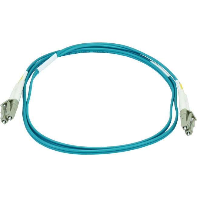 This is an OM3 "Aqua" laser-optimized multi-mode cable with a 50 ?m core and 125 ?m cladding diameter. The cable has color-coded Dual LC connectors on each end and is ideal for use in 10 Gigabit Ethernet (GbE) networks.