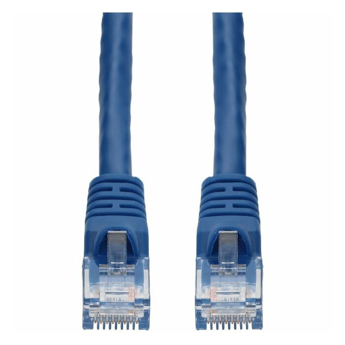 This is a 14ft RJ-45 (male) to RJ-45 (male) blue unshielded twisted pair PVC copper patch cable. The Cat6 cable is a standardized twisted pair cable for Ethernet or other physical network layers. Cat6 standards specify performance of up to 250MHz. This PVC jacketed cable is best suited for LANs or SANs and is recommended for connection between fiber patch panels hubs switches media converters and routers. Unshielded twisted pair patch cables are perfect for data centers LANs and other short range network connections. Our patch cables are 100% compliant for all of your networking needs. Our products are guaranteed by federal law to not affect or void OEM warranties.