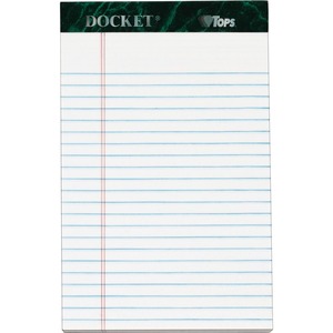 Compact writing pads feature perforation at the top for a clean tear-out every time. Binding at the top is double-stitched for added strength. Extra-sturdy, 60 point, chipboard back provides extra support and durability. Each pad contains 50 sheets of heavyweight, 16 lb. paper that resists bleed-through. Each sheet is junior legal-ruled with 9/32" line spacings and a 1" left margin.