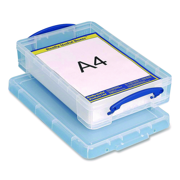 Really Useful Box® Snap-Lid Storage Bin, 1.05 gal, 10.25 x 14.5 x 3.37, Clear/Blue