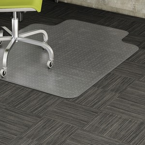 Chairmat with a wide lip is designed and properly weighted for low-pile carpets up to 1/4" with little or no padding. Design features less than 1/8" thick vinyl construction and a beveled edge. Gripper back keeps the mat in place on a variety of carpet styles. Textured surface on chairmat resists scuff marks and slips.